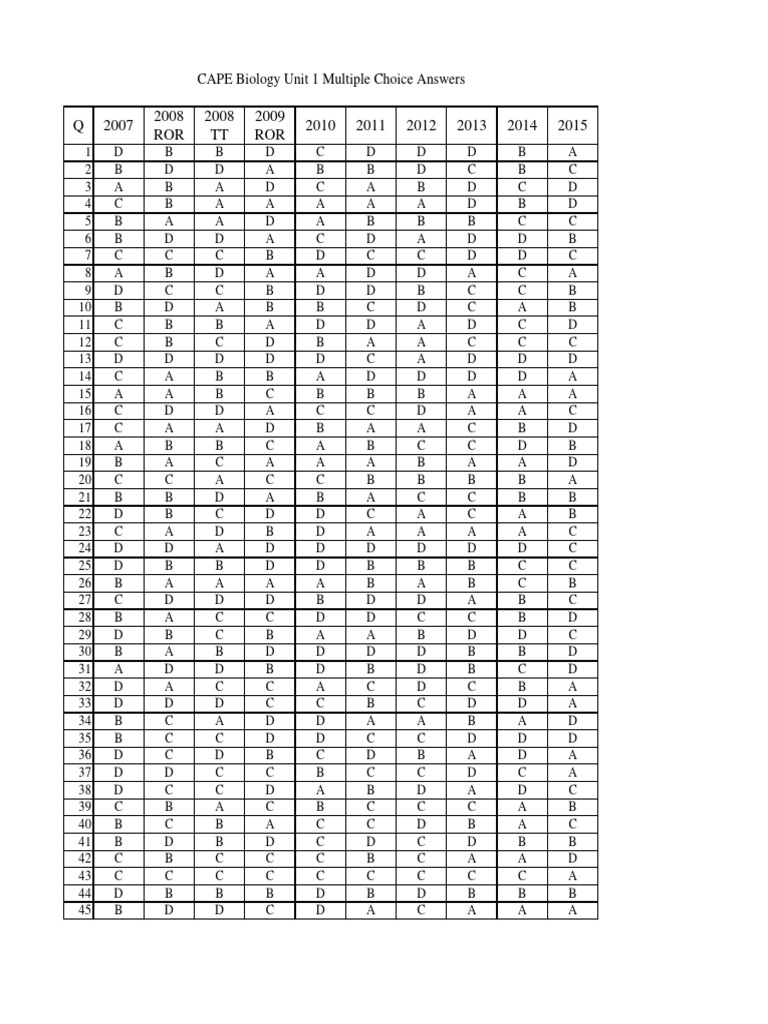 Cape biology unit 2 paper 1 2014 answers. Download CAPE Biology Unit P1 2016. CAPE Biology Unit P1 2016. 2004 MayJune Subject Report 127.