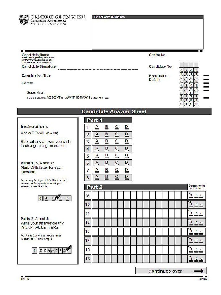 Fce Answer Sheet Paper 2 Writing Worksheet